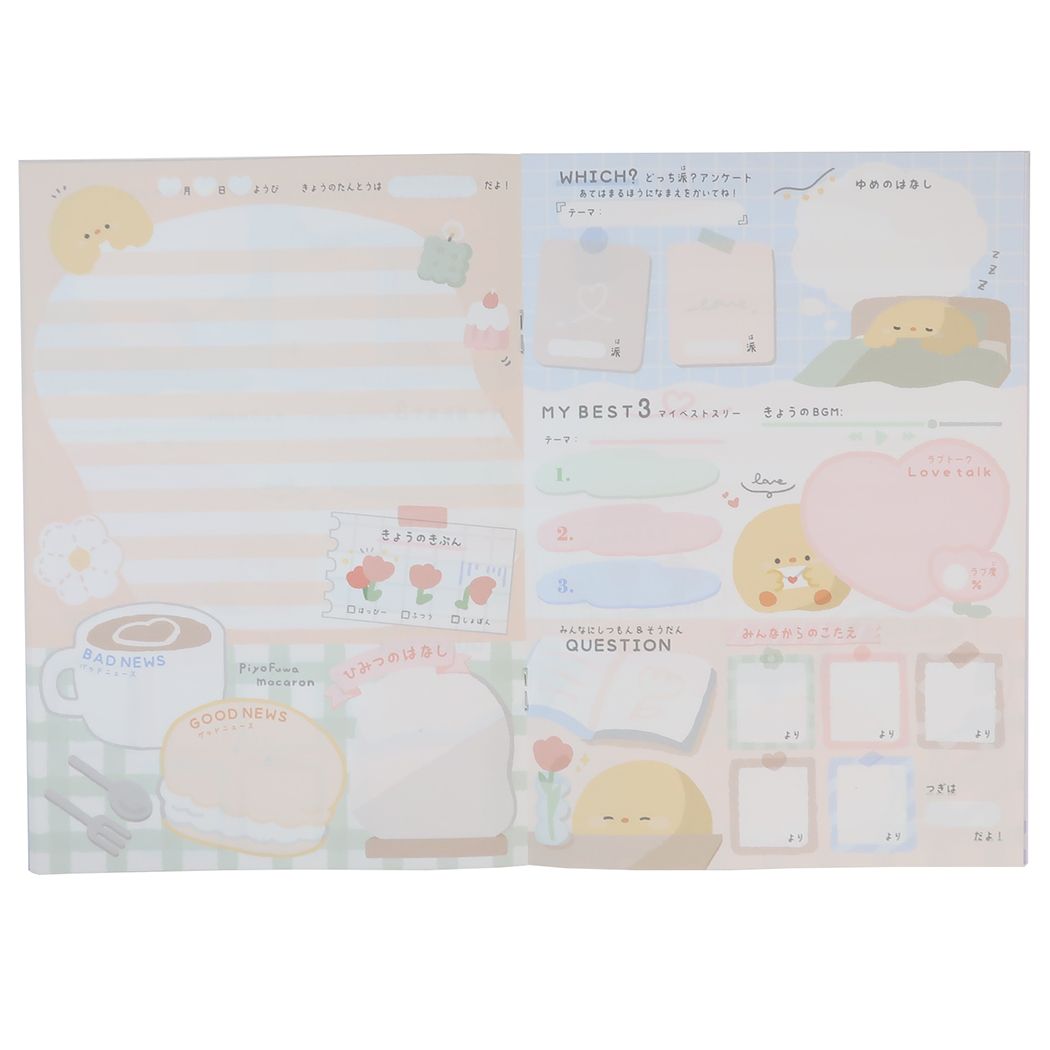 「プロフ帳 交換ノート」 交換ノート うらない付きA5交換ノート PIYOBIYORI カミオジャパン 何度でもあそべる占いつき 新学期にぴったりのキュートなステーショナリーシリーズこちらは最大6人で出来ちゃう可愛い交換ノートみんなであそべる占いが付いています中のノートもフルカラーでとってもラブリー好きな男の子の話や悩みごと…ノートでこっそりぶっちゃけちゃおうかわいい文具いろいろあるのでお気に入りを探してねサイズ:約148x210mm(20枚綴り)[Made in Japan] ギフト/プレゼント/文房具/小学生/子ども