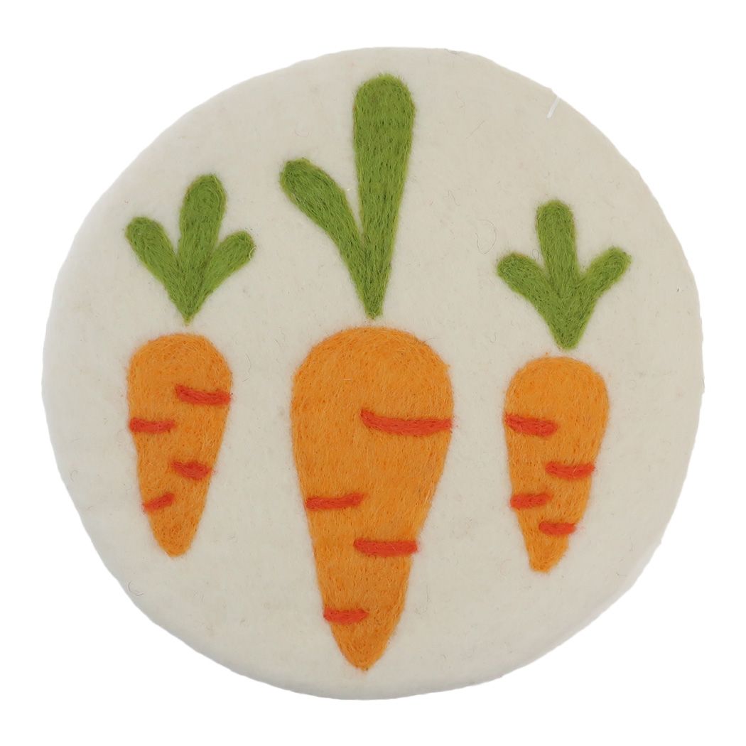 「鍋 鍋用品 調理器」 鍋用品 鍋敷き キッチンキャロット 丸眞 フェルト仕様のあたたかみのある鍋敷き こちらは使いやすい[鍋敷き]手作りのあたたかさが食卓を彩ります。ハンドメイドのためサイズ感は同じでも柄が異なり、あなただけの商品になります。ウールはニュージーランド産の天然なのでペットにも好まれます。ほかにもいろんなグッズがあるのでお気に入りをみつけてくださいサイズ:約210x210mm素材:ウール ハンドメイド 鍋敷き/テーブルウェア/個性的/おしゃれ/可愛い