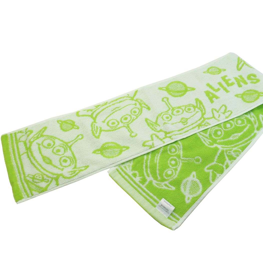 「マフラータオル」 トイストーリー グッズ マフラータオル キャラクター 抗菌防臭 スリム ロングタオル プラネット エイリアン ディズニー ジョギングやダンスなどスポーツにぴったりな長い首掛けタオル ディズニー&ピクサーの大ヒット映画[TOY STORY]の可愛らしい新作タオルシリーズこちらはとってもCUTEな[マフラータオル]長いので首に掛けれるからジョギングやウォーキングにもGOODシャーリングのコットン100%で吸水性&肌触りもバツグンかわいいタオルいろいろあるのでお気に入りを揃えてくださいサイズ:約180x1100mm素材:コットン(SEK/抗菌防臭加工) カラー/グリーン系(緑) 汗拭きタオル/スポーツタオル/ランニング/キャラクタータオル/子供 大人