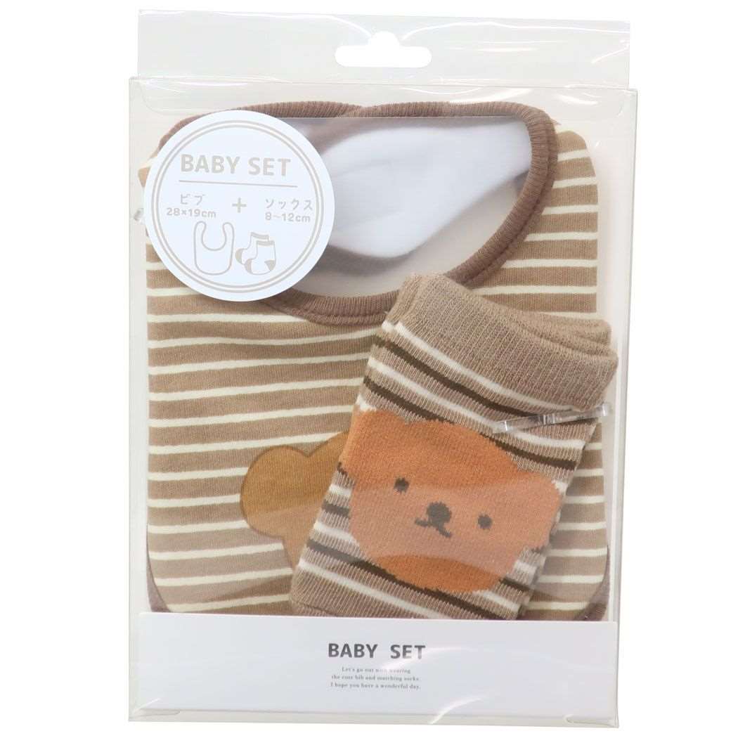 「ベビービブ:キャラクター」 ミッフィー ベビー用品 ベビーセット ビブ&ソックス ボリス ボーダー ディックブルーナ プレゼントにも最適なビブと赤ちゃん用ソックスセット ディックブルーナの人気絵本[miffy/ミッフィーちゃん]のベビーグッズシリーズこちらはかわいい[ビブ&ソックスセット]出産祝いなどのギフトにもぴったりデザインいろいろあるのでお気に入りをみつけてくださいサイズ:(ビブ)約19x28cm/(ソックス)約9-12cm素材:(ビブ)コットン/(ソックス)コットン、ポリエステル、その他 よだれかけ/くつした/女の子/男の子/贈り物