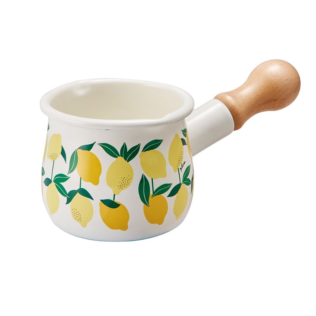 「鍋 鍋用品 調理器」 調理器 プルーン Plune. ホーロープチミルクパン 堀内映子 レモン ガス火専用 片手鍋 ちょっと使いに重宝する小さなミルクパン おうちでの生活に彩りと楽しさを添えるテキスタイルブランド[Plune./プルーン]シリーズこちらはちょっと使いに便利な[ホーロープチミルクパン]新潟県燕市でひとつひとつ絵柄を丁寧に手で貼り、仕上げているホーローですミルクを温めたり、野菜やタマゴを茹でたりちょっとしたお料理に大活躍ホーローは、耐酸性に優れているので酸、塩分に強く、においが付きにくいまた色が移らず雑菌が繁殖しにくく衛生的ですガス火専用ですデザインいろいろあるのでお気に入りをみつけてくださいサイズ(重量/容量)約195x105x88mm(約260g/約550ml)素材本体:ほうろう用鋼板ハンドル:天然木 プレゼント/ギフト/可愛い/おしゃれ/新生活
